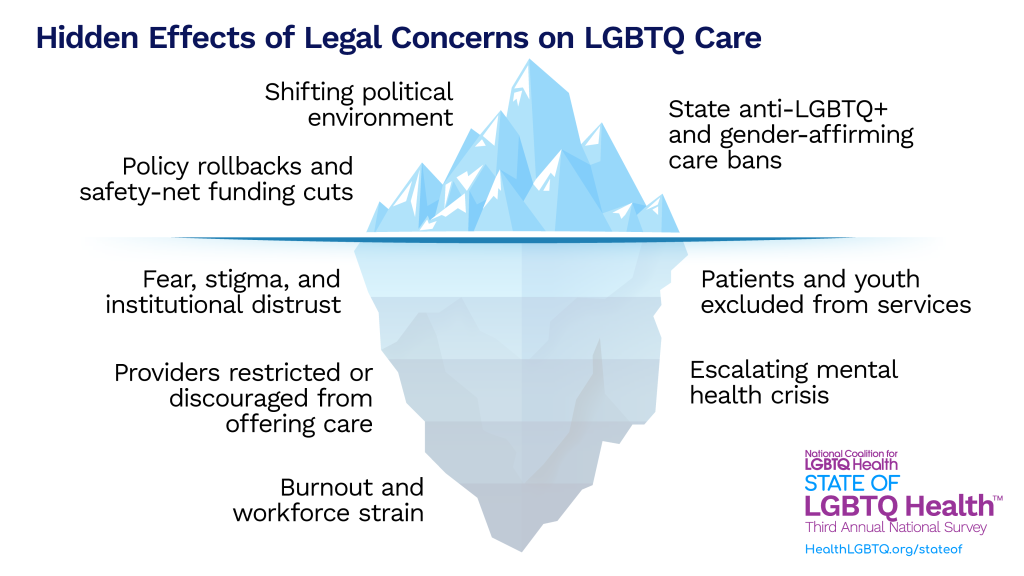 Washington, D.C. — Healthcare professionals reveal that increasing emotional exhaustion among service providers and fear among patients experiencing threats to gender-affirming care are exposing deeper systemic deficits that remain under-recognized in most current responses to LGBTQ+ health equity. Findings from the National Coalition for LGBTQ Health State of LGBTQ Health™ Third Annual National Survey provide a timely snapshot of health service delivery amid a rapidly deteriorating policy environment.